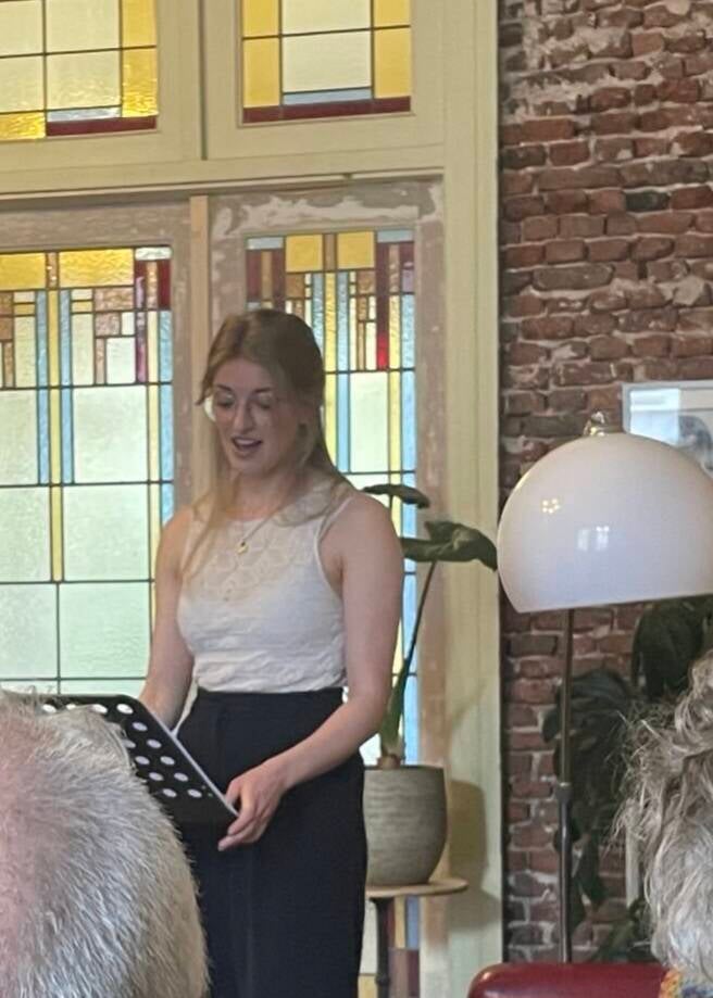In de middag werden we meegesleurd in prachtige verhalen over de lente en de liefde. geïnspireerd op het gedicht 'du bist wie eine Blume' van H. Heine. Job en Gave speelden enkele werken van o.a. Schumann en Boulanger, die werden toegelicht aan de hand van fictieve brieven, waarmee Gave een mooi inkijkje gaf in de gedachtenwereld van deze componisten. Heerlijk hebben we weggedroomd bij deze liefdevolle muziek.